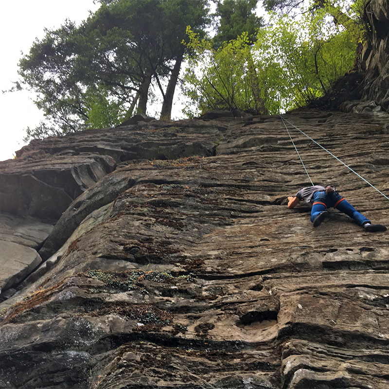 There’s a lot of cross over in the physical and mental skill sets required for BJJ and rock climbing. The use of grips, leverage and a willingness to push past your comfort zone serves one well in both disciplines. One of Solarte’s students, Isaac, is an experienced climber was able to lead us on a climbing